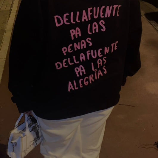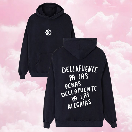 Esta sudadera Dellafuente captura la esencia del artista con una frase icónica que te acompaña en todo momento: "Dellafuente pa las penas, Dellafuente pa las alegrías." Con un diseño cómodo y estilo urbano, es perfecta para los fans que buscan expresar su conexión con su música y mensaje. Fabricada con materiales de calidad para mantenerte abrigado y con estilo, es una prenda ideal tanto para tus días casuales como para lucir en conciertos. ¡Lleva contigo la energía de Dellafuente y haz de esta sudadera tu nueva favorita!