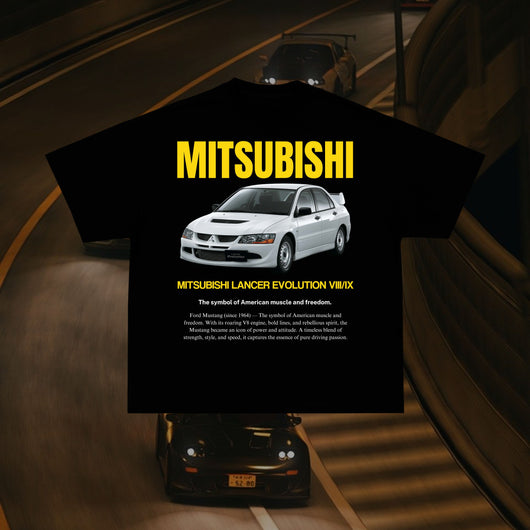 Domina la carretera con la camiseta Mitsubishi Lancer Evolution VIII/IX (2003–2007), inspirada en el legendario coche de rally y drift japonés que marcó a toda una generación.